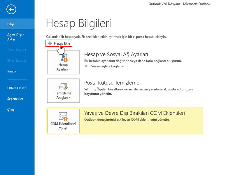 Daha sonra üst taraftaki "Hesap Ekle" butonuna tıklıyoruz.
