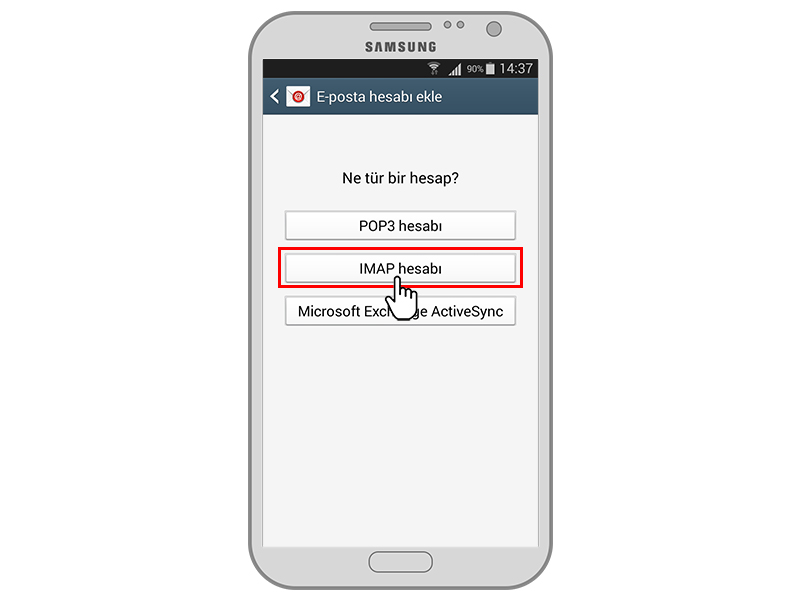Bu ekranda "IMAP hesabı" seçeneğine tıklıyoruz.