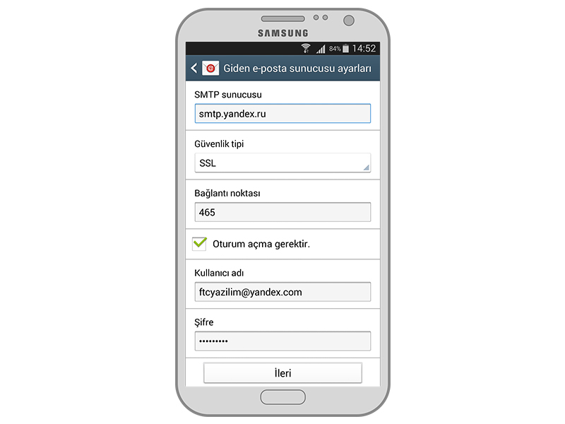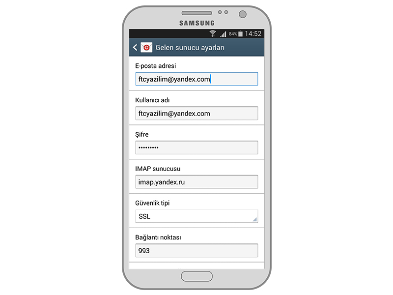 Gelen sunucu ayarlarını resimdeki şekilde yapılandırıyoruz.